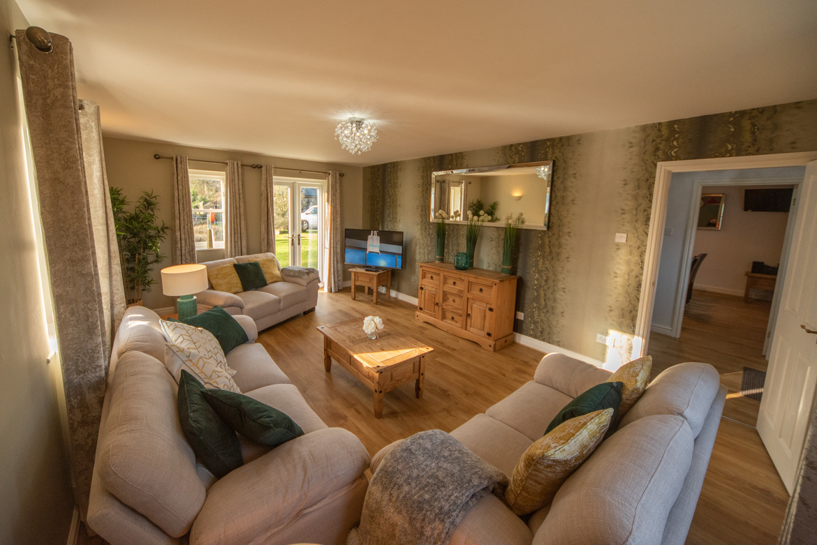 The relaxing lounge space features a high-end TV for you to unwind in front of after a day out exploring the Peaks. Roomy and cosy, this section of the property completes the downstairs space nicely.