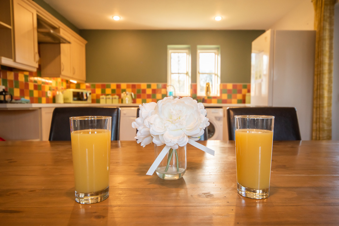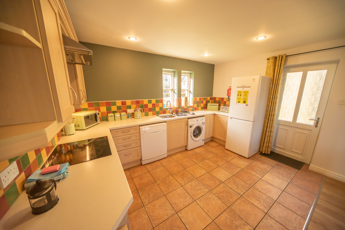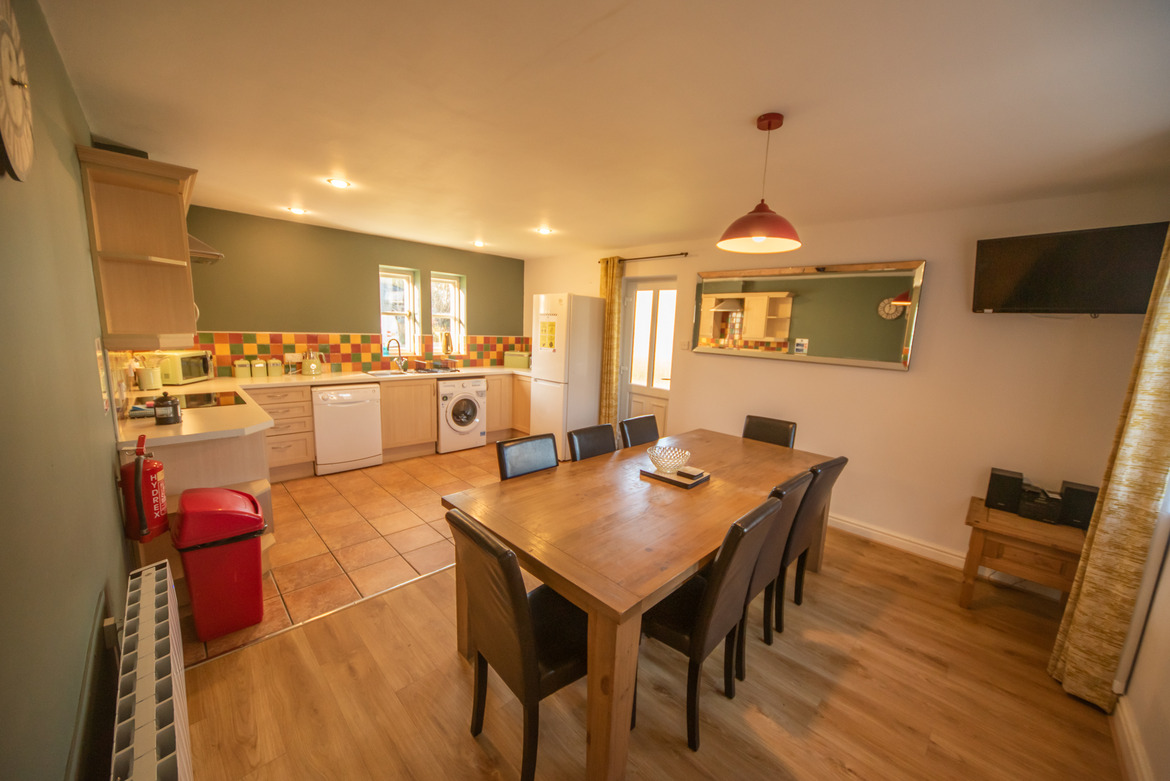Inside the cottage, there is a large, open-plan kitchen and dining area; which includes a sizeable dining table. The kitchen comes equipped with a great range of modern appliances including: washing machine, fridge-freezer, dishwasher, microwave and an electric oven and hob. The cupboards are also packed full of all the equipment you could possibly need during your stay.